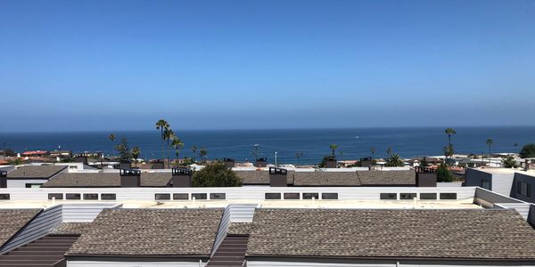 Panoramic ocean-view balconies attached to main floor living room and top-floor primary bedroom. Direct-access two-car garage. Community pools. Walk to dining and shopping in Riviera Village.